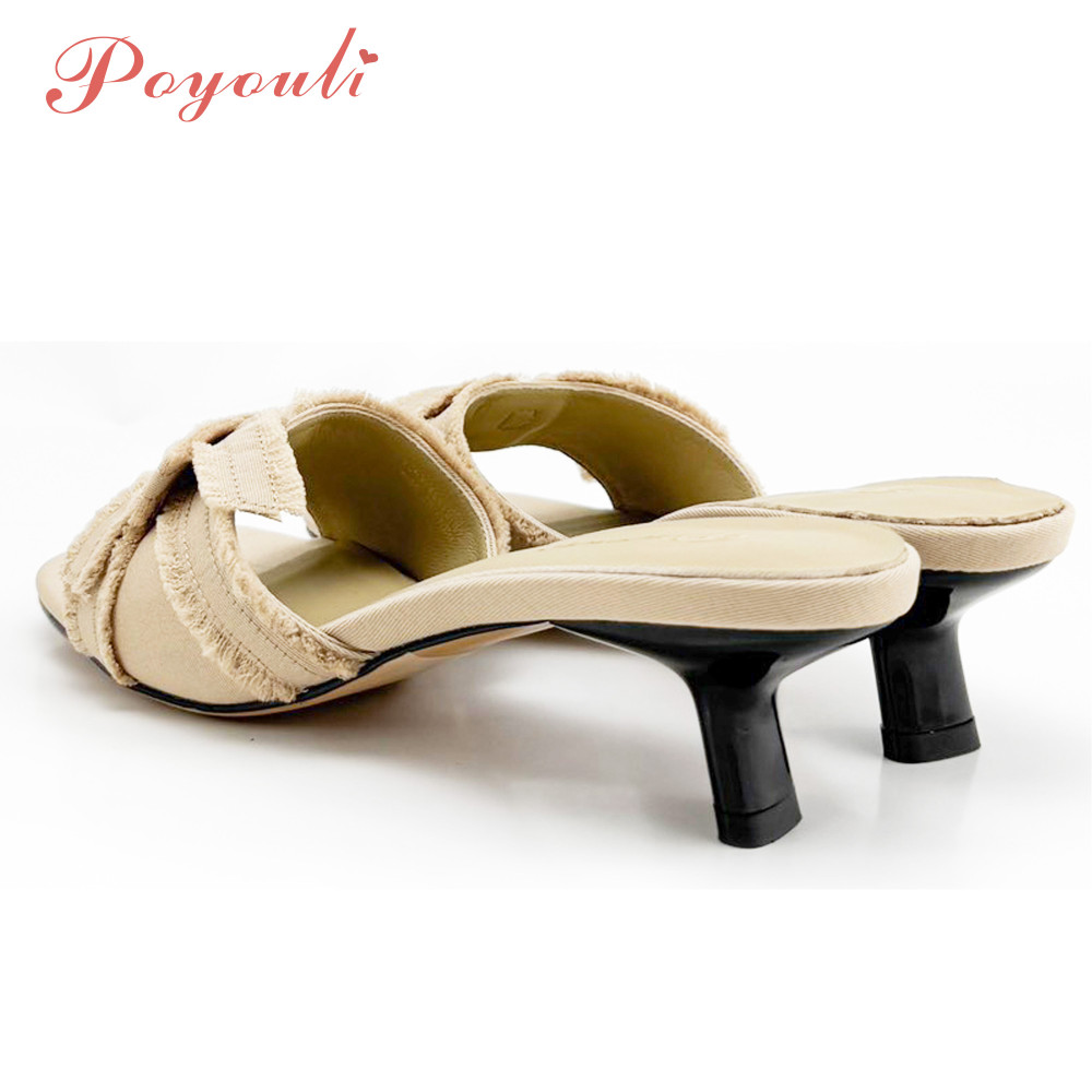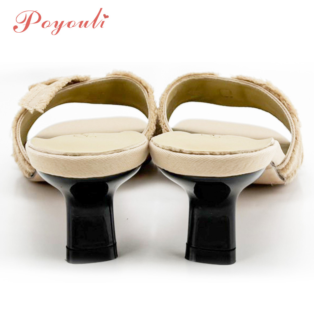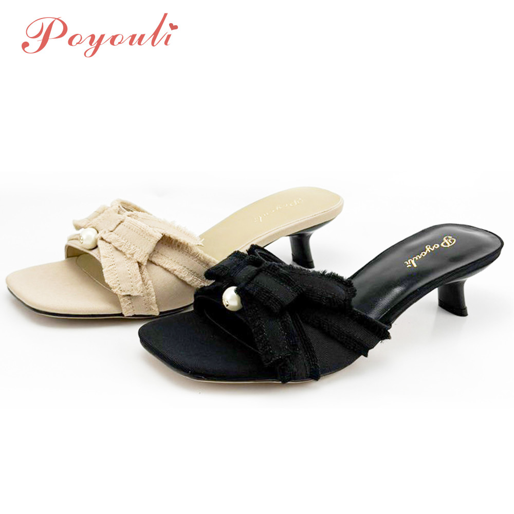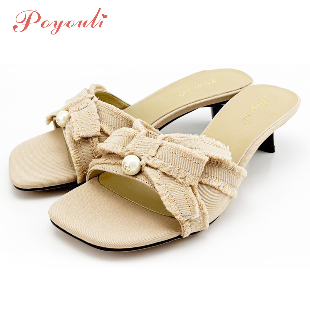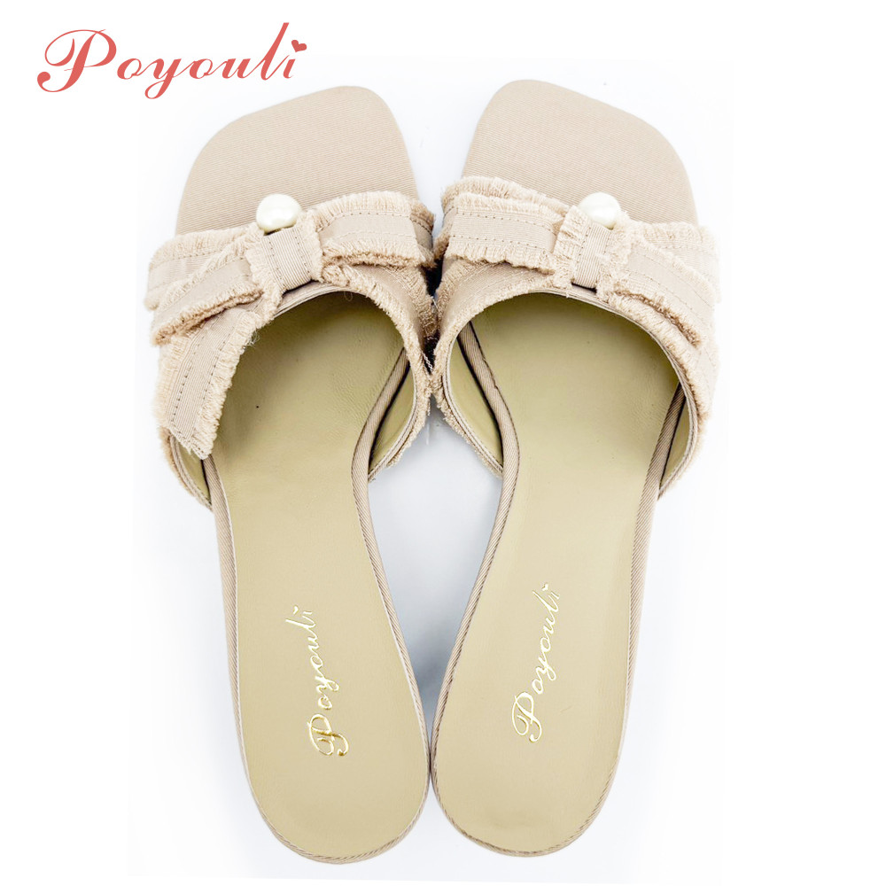 POYOULI蝴蝶結方頭氣質可愛低跟拖鞋-杏