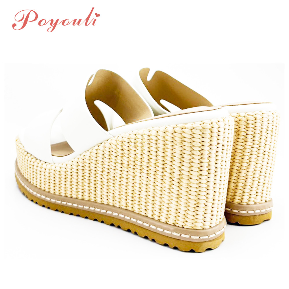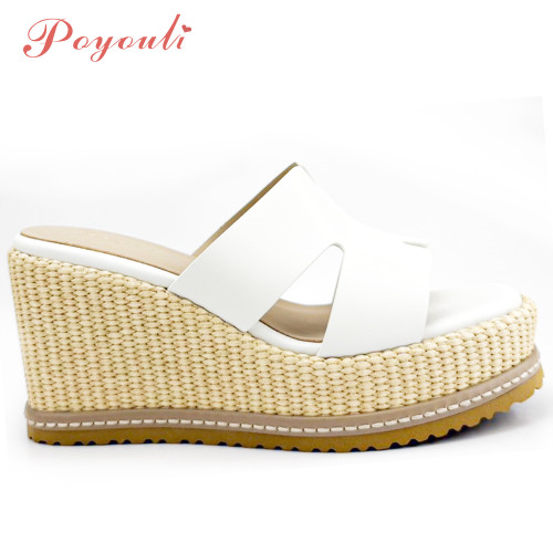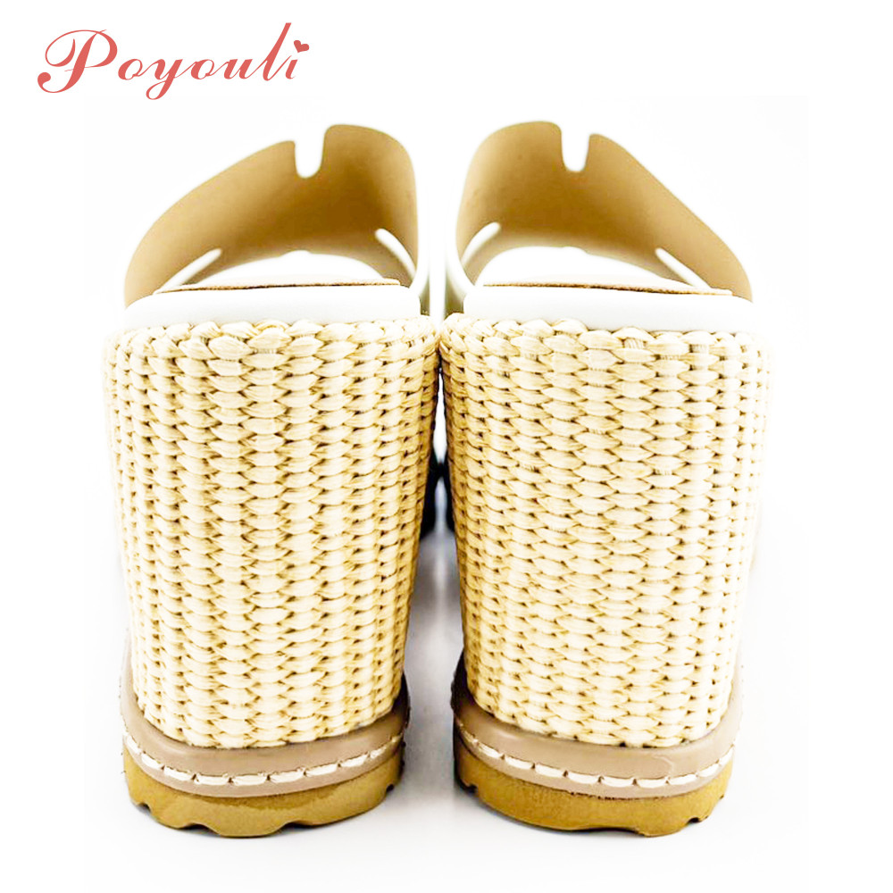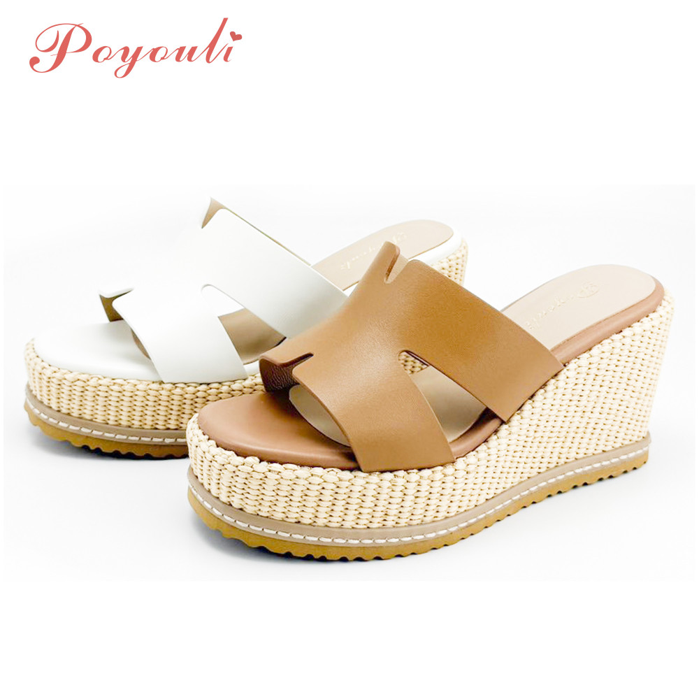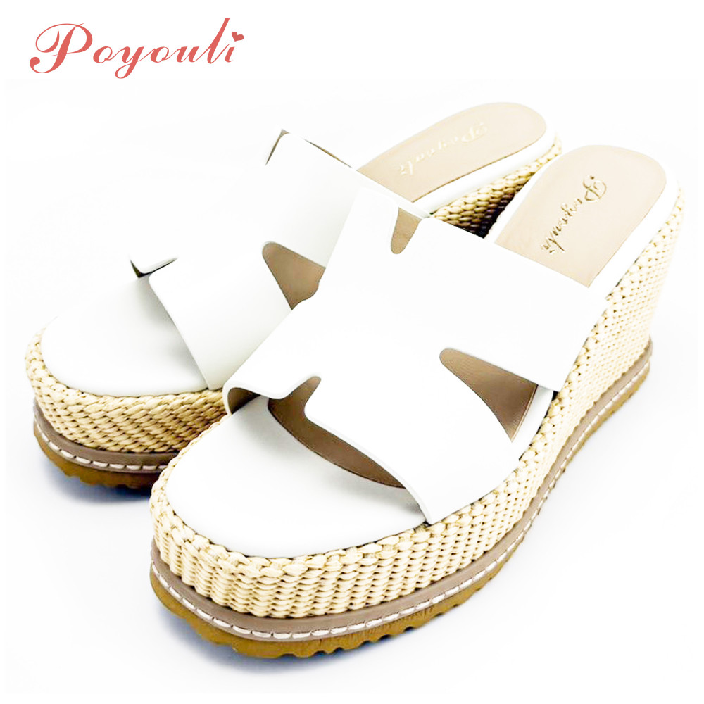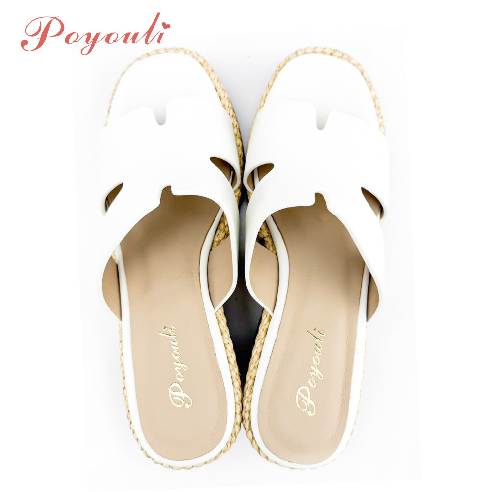 POYOULI韓系氣質厚底雙C增高拖鞋-米