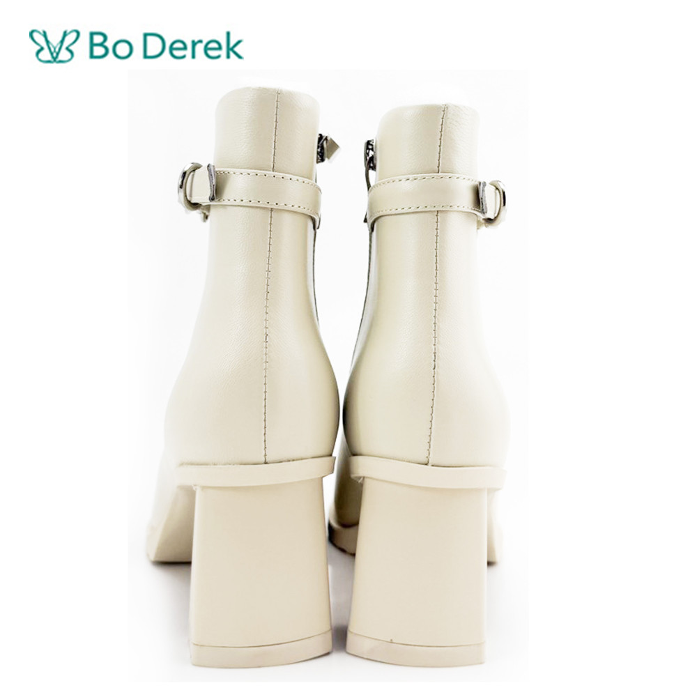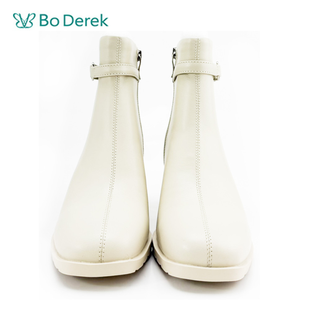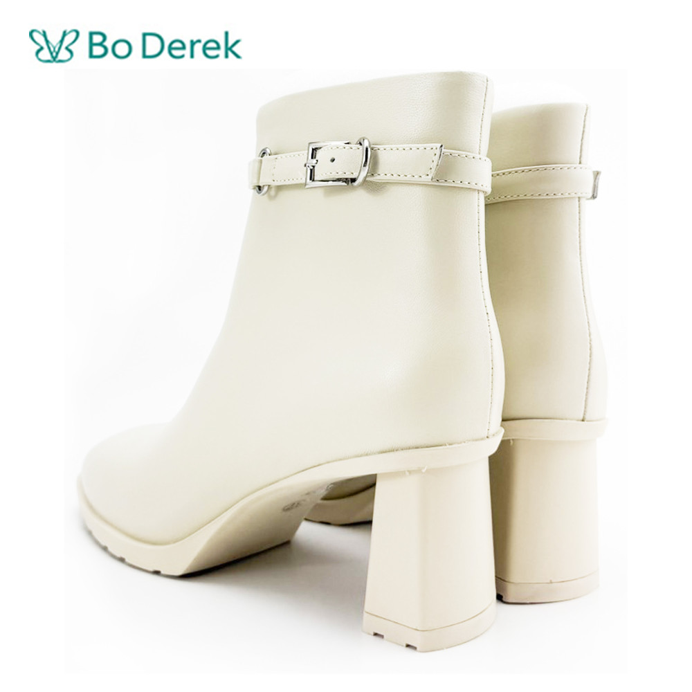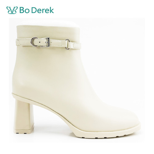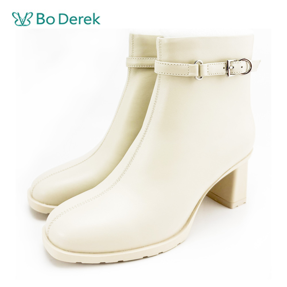 Bo Derek方頭個性扣環裝飾高跟中靴-米白
