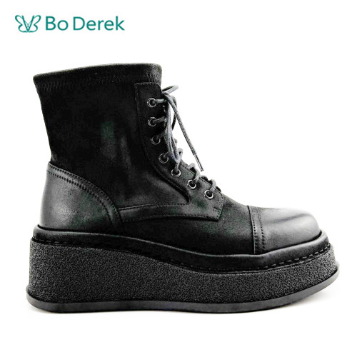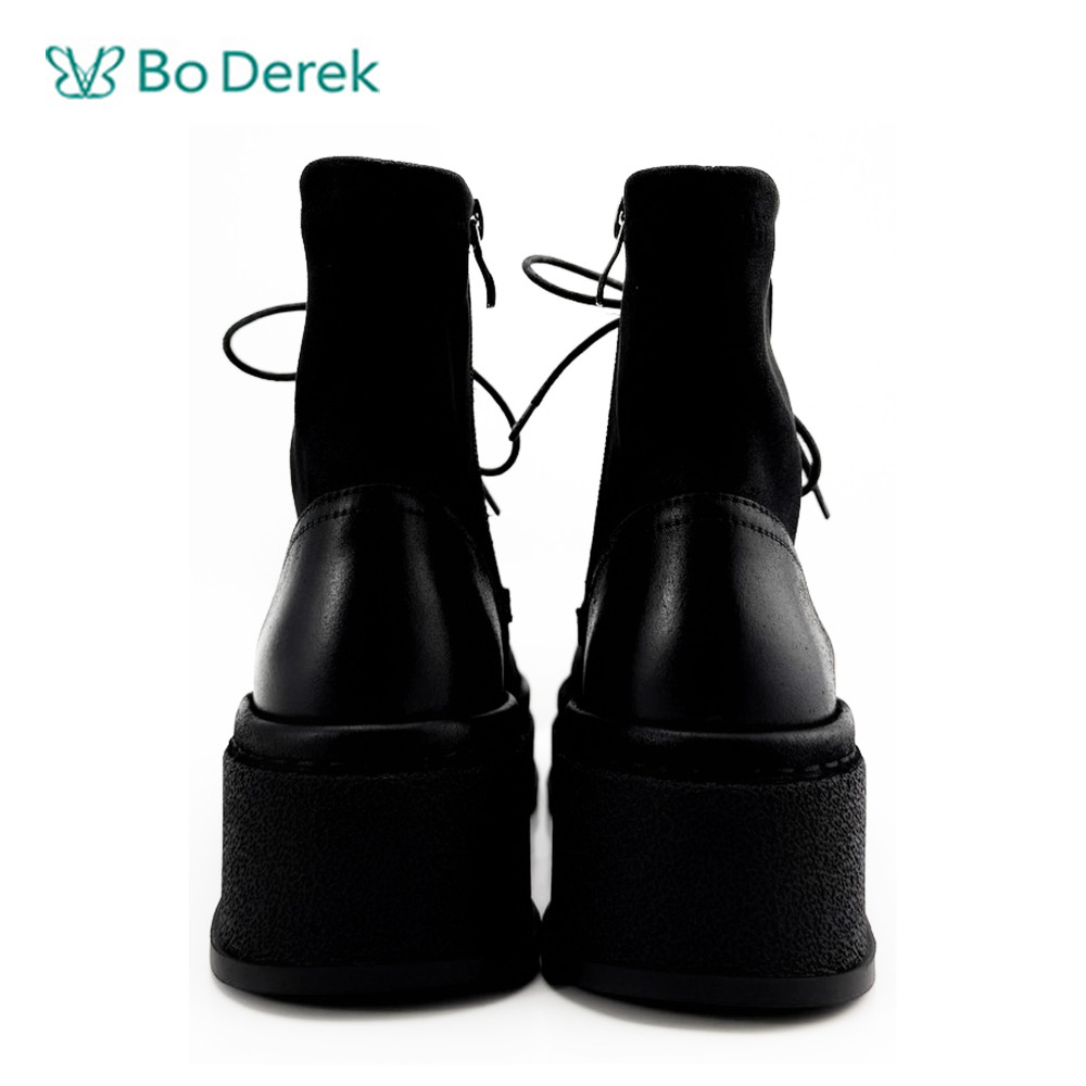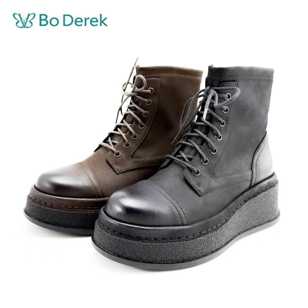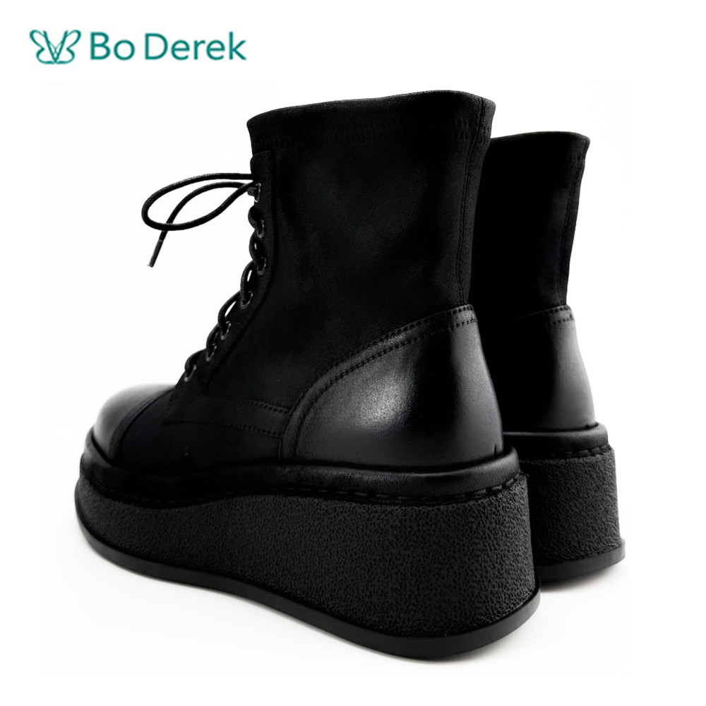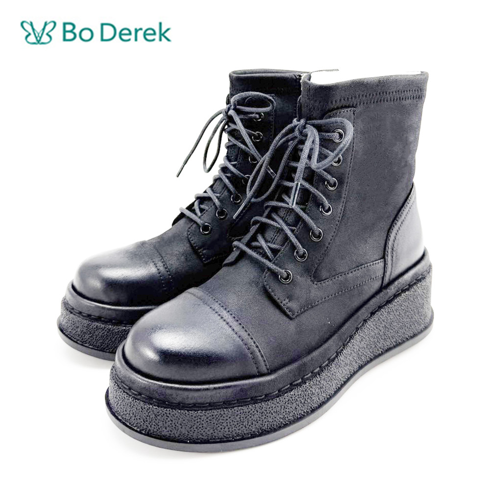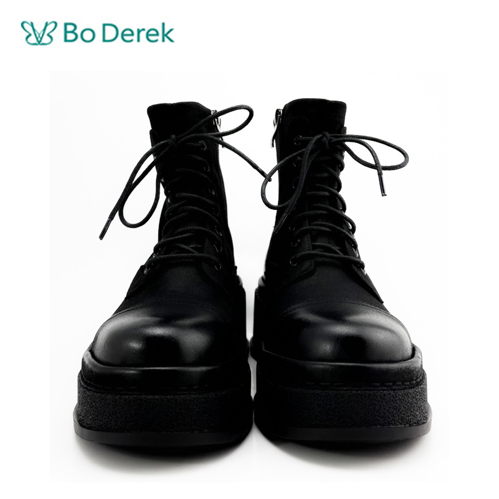 Bo Derek帥氣女孩綁帶圓頭短靴-黑
