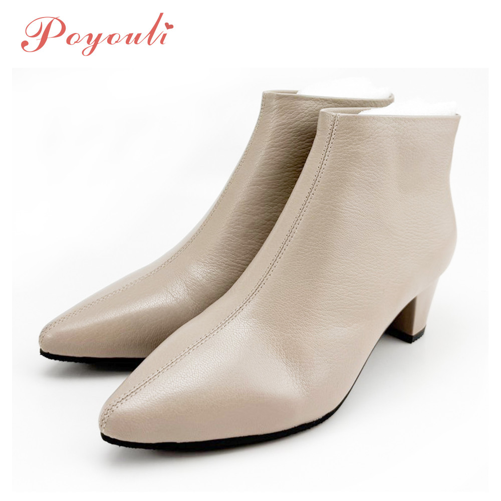 POYOULI尖頭素面酷炫女孩短靴-灰