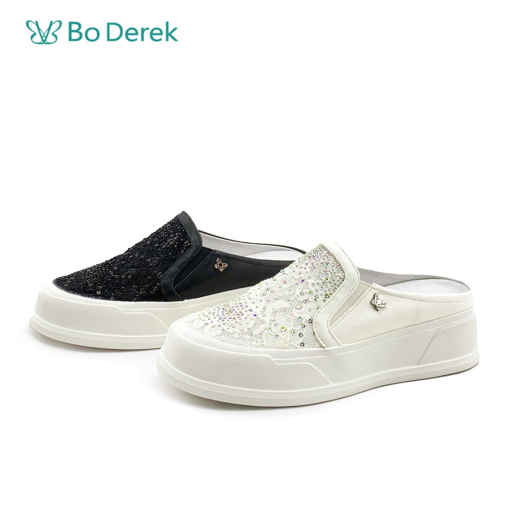 Bo Derek 細閃蕾絲水鑽厚底穆樂休閒鞋-黑
