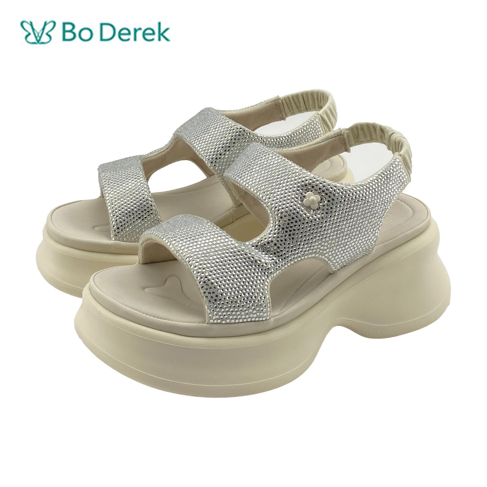 Bo Derek 鑽面彈性後帶厚底休閒涼鞋-米白