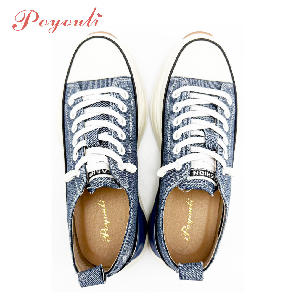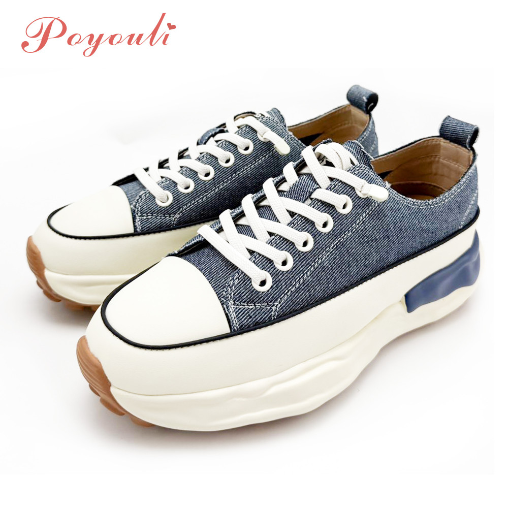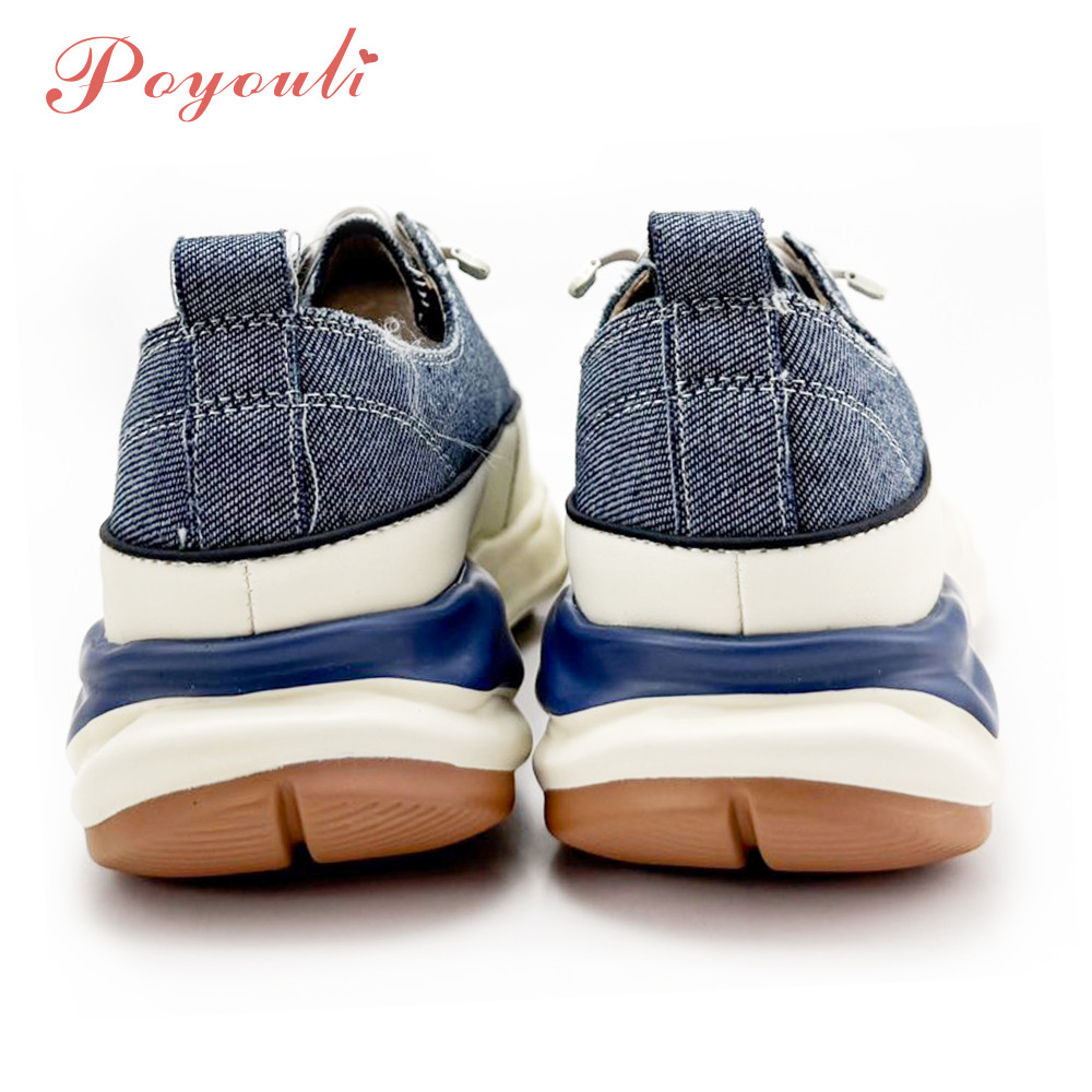 Poyouli 率性真皮免綁帶厚底休閒鞋-牛仔藍