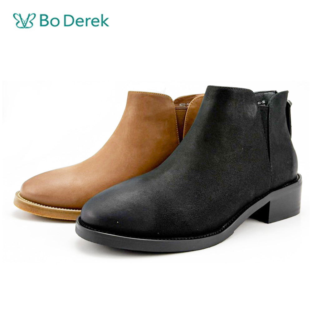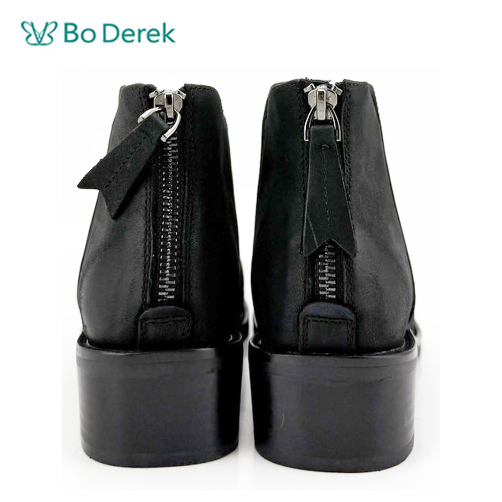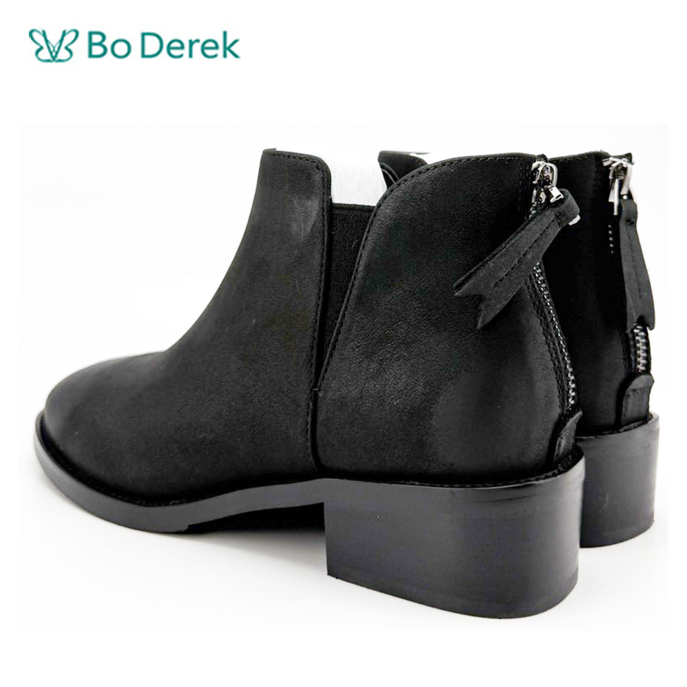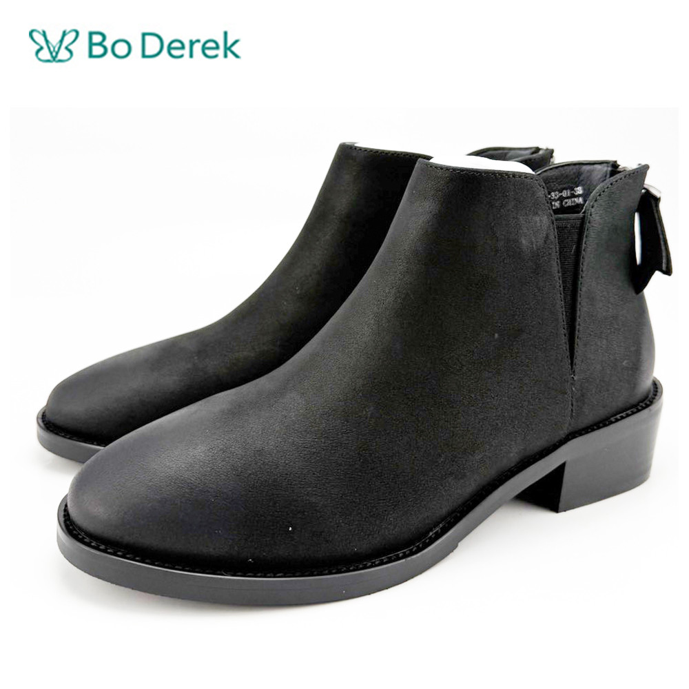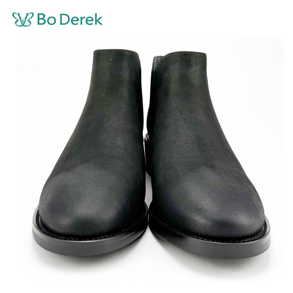 Bo Derek復古牛仔彈力低跟短靴-黑