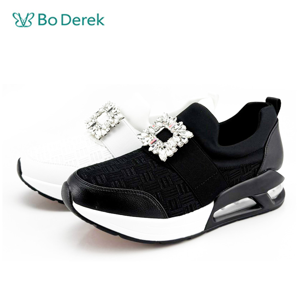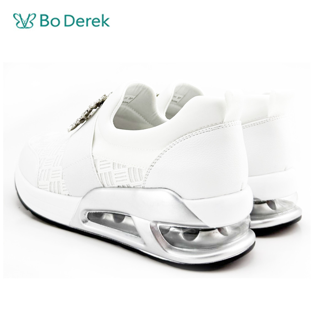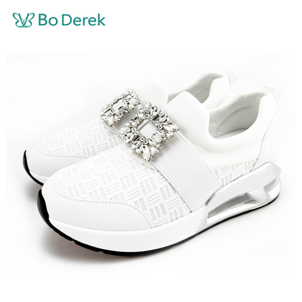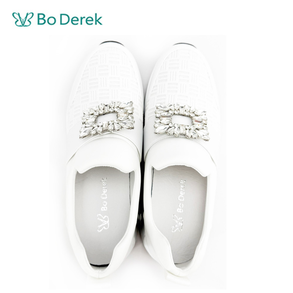 Bo Derek方型水晶鑽拼接運動休閒鞋-白