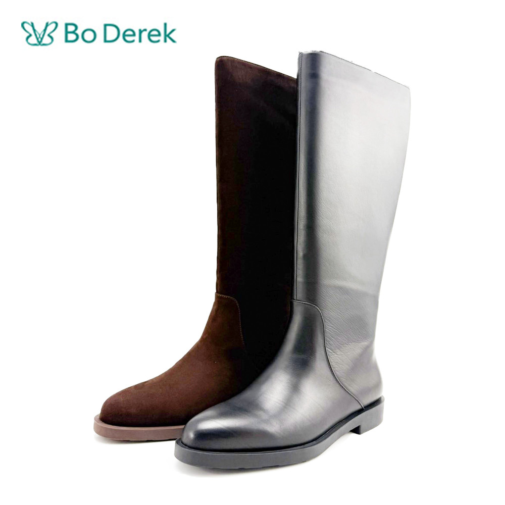 Bo Derek素面羊皮方圓頭中跟短靴-黑