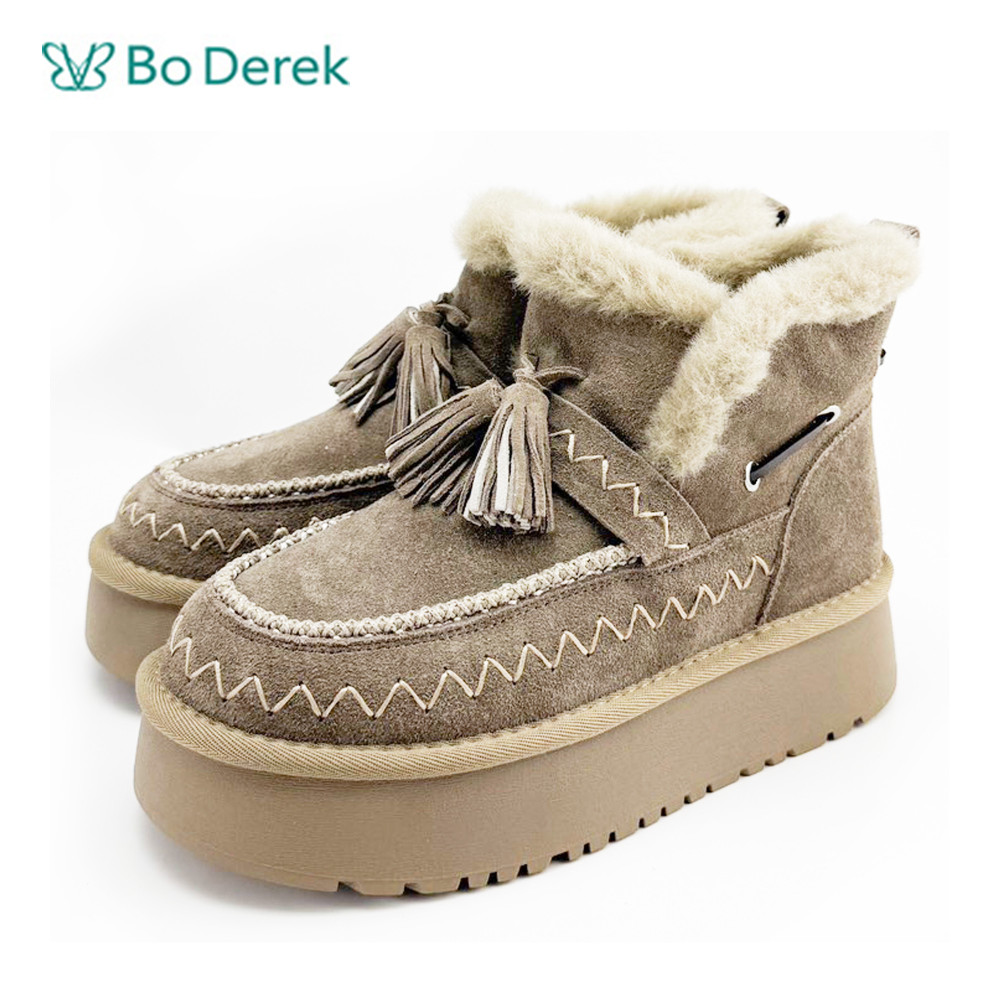 Bo Derek蒙古流梳毛絨雪地短靴-灰