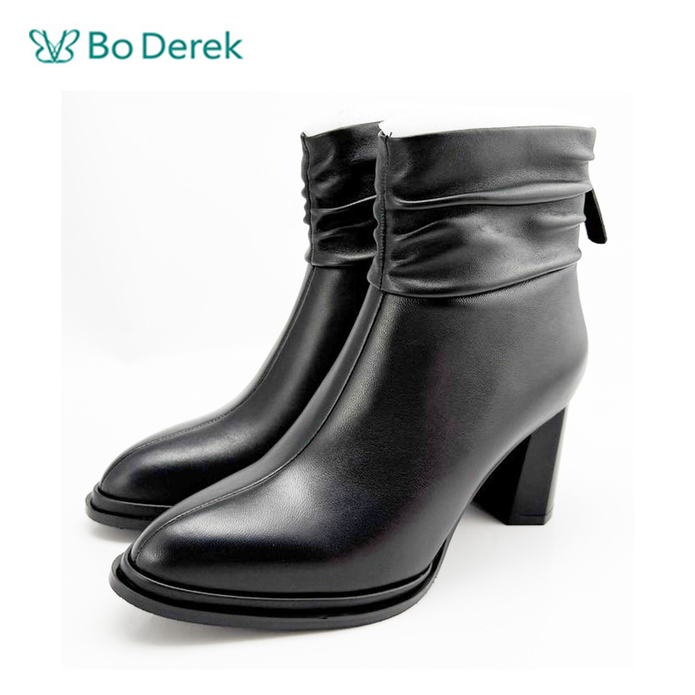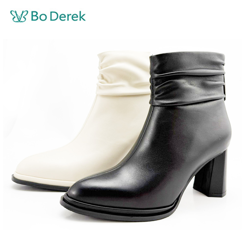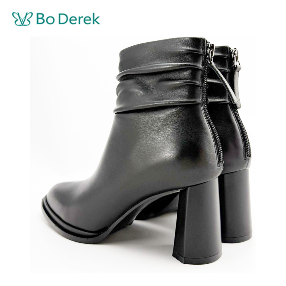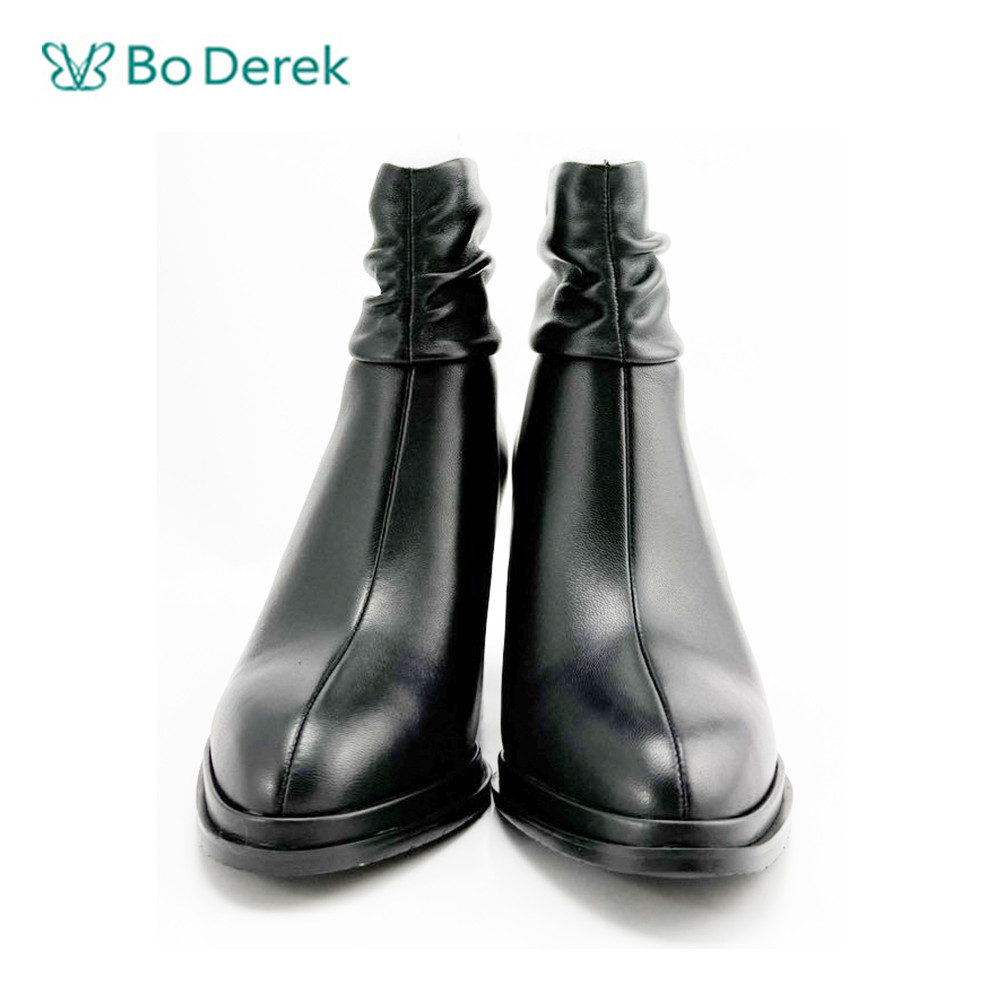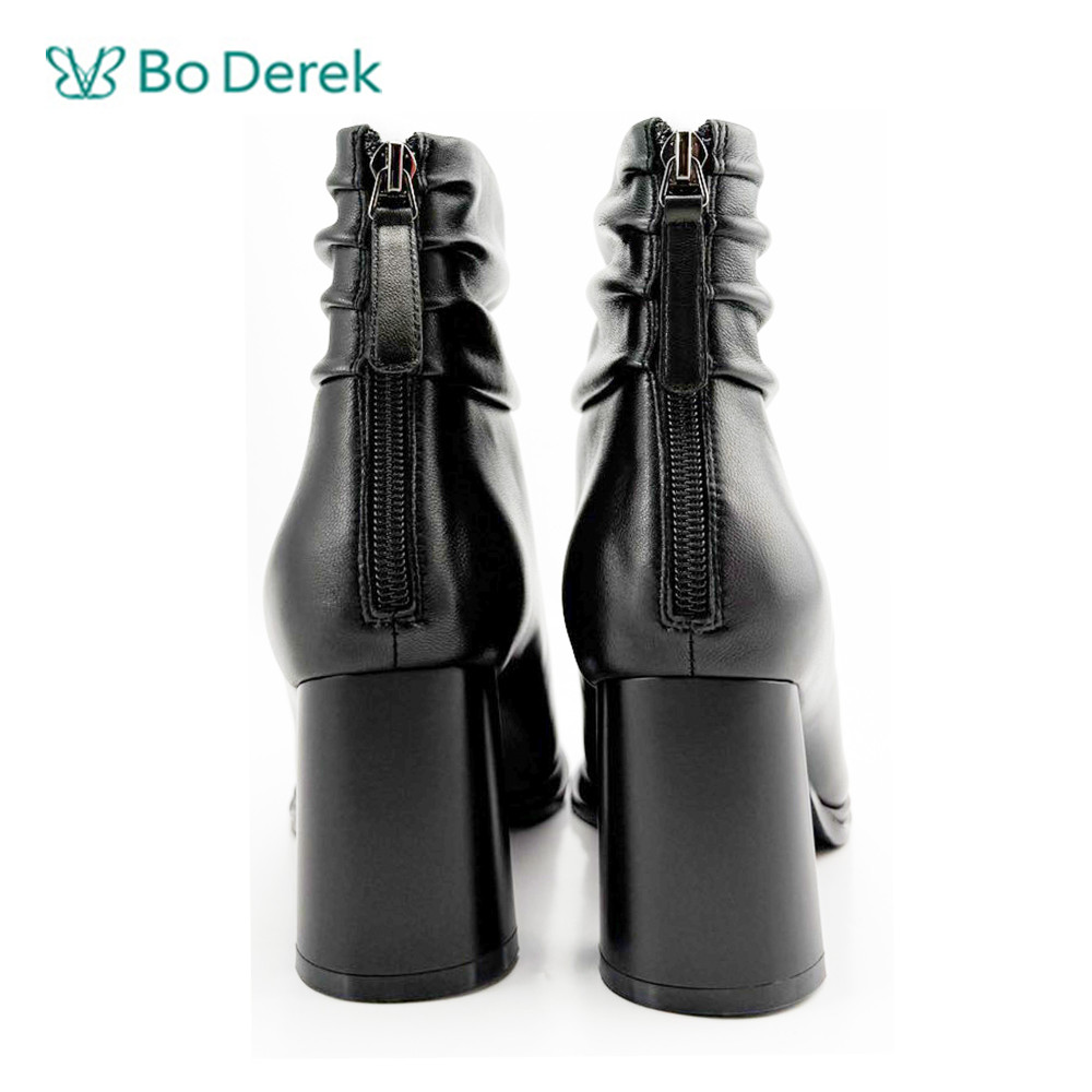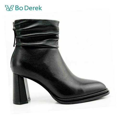 Bo Derek帥氣腳踝抓皺粗中跟短靴-黑