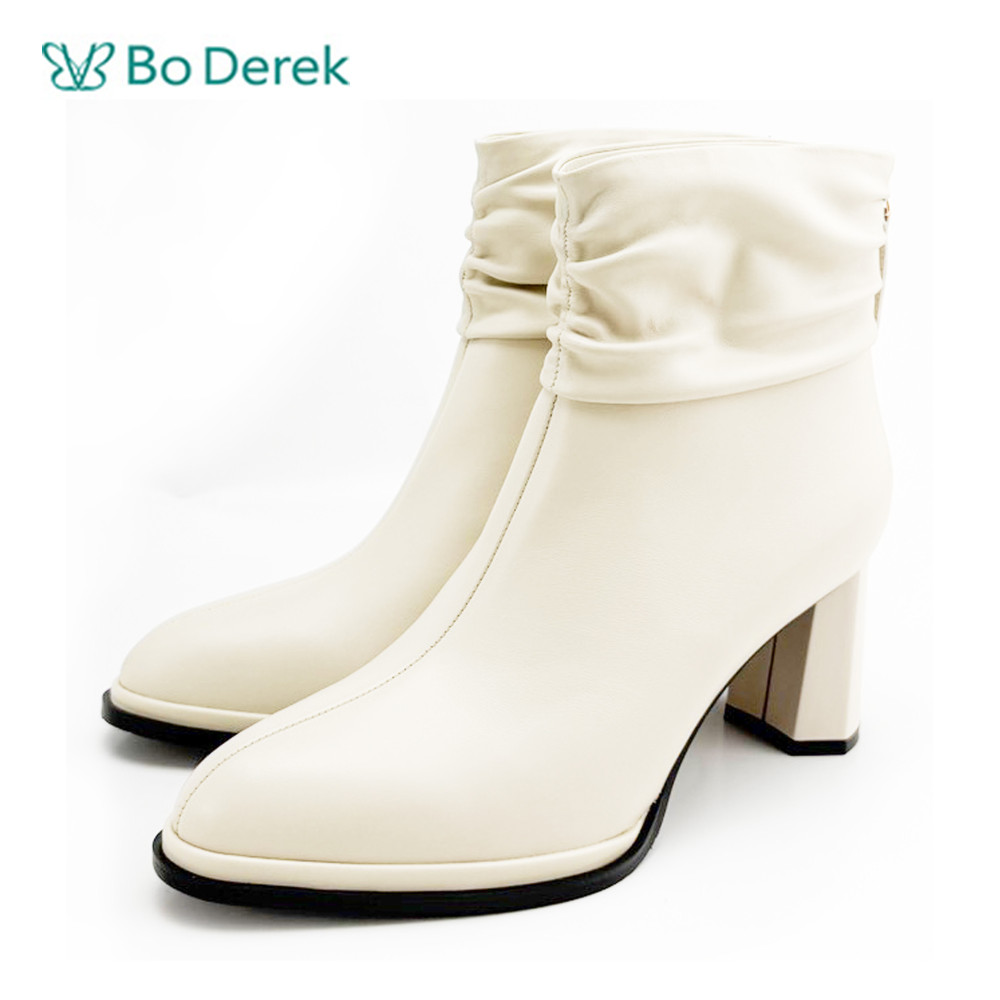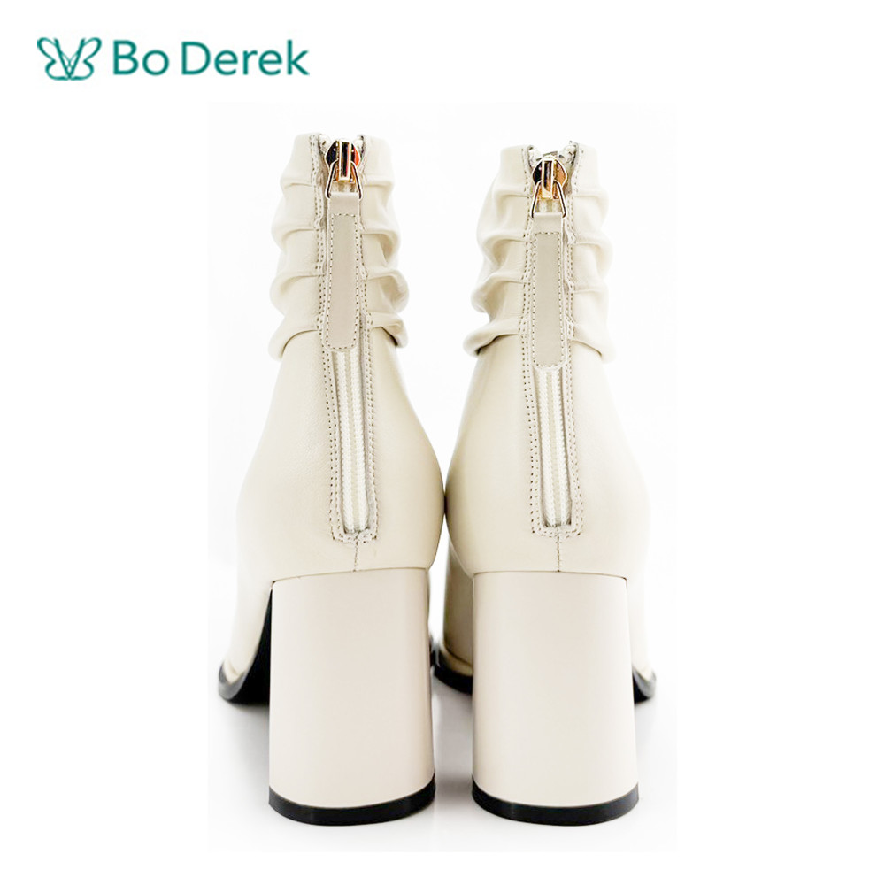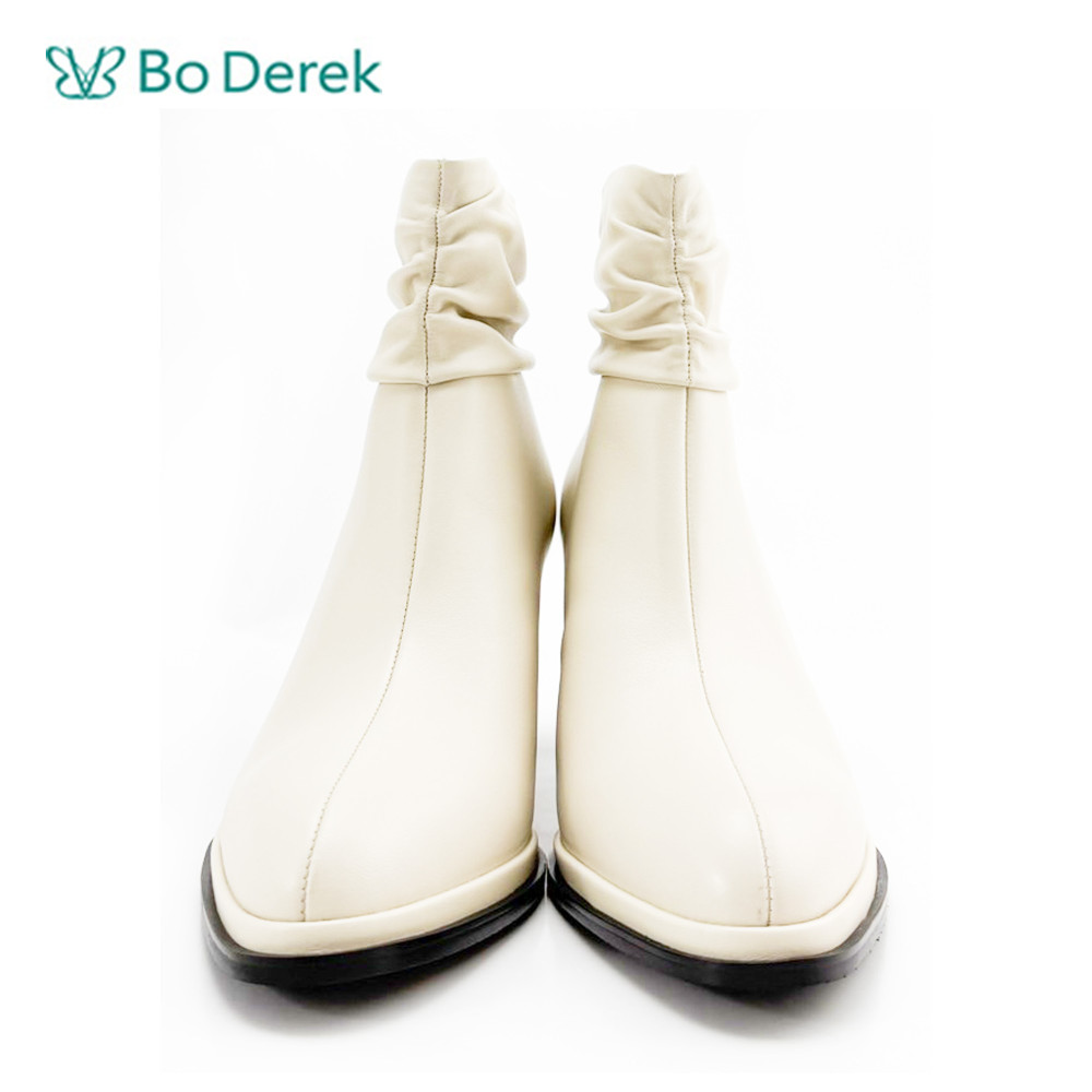 Bo Derek帥氣腳踝抓皺粗中跟短靴-米