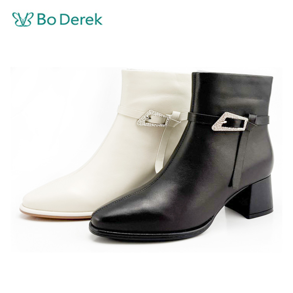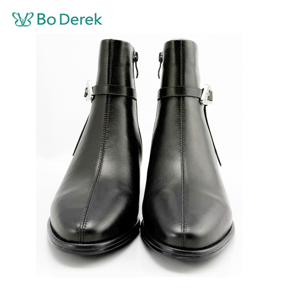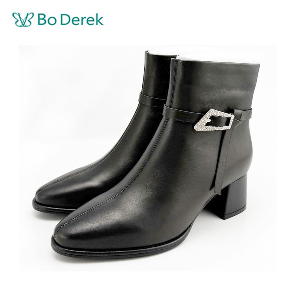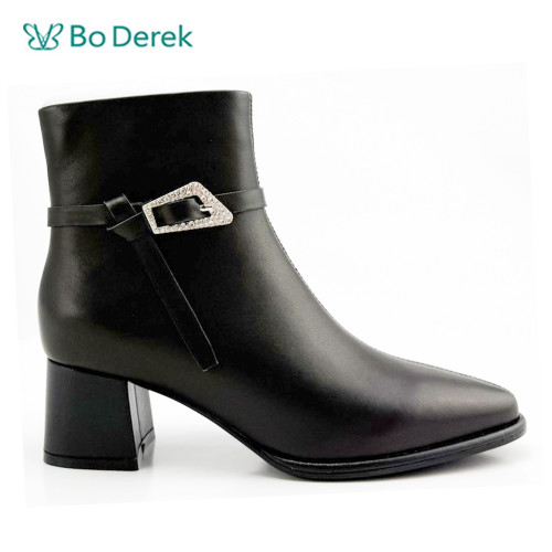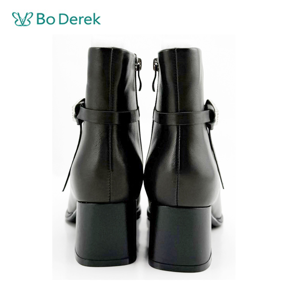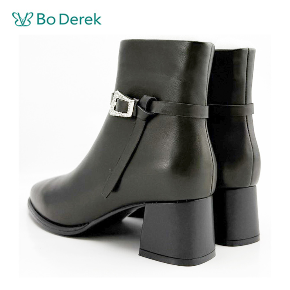 POYOULI圓尖頭方形閃亮扣短靴-黑