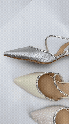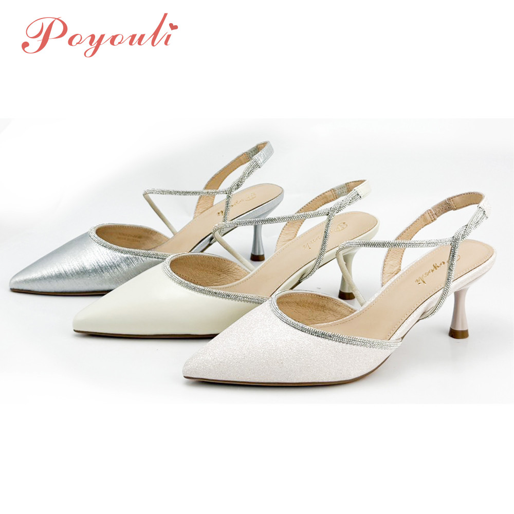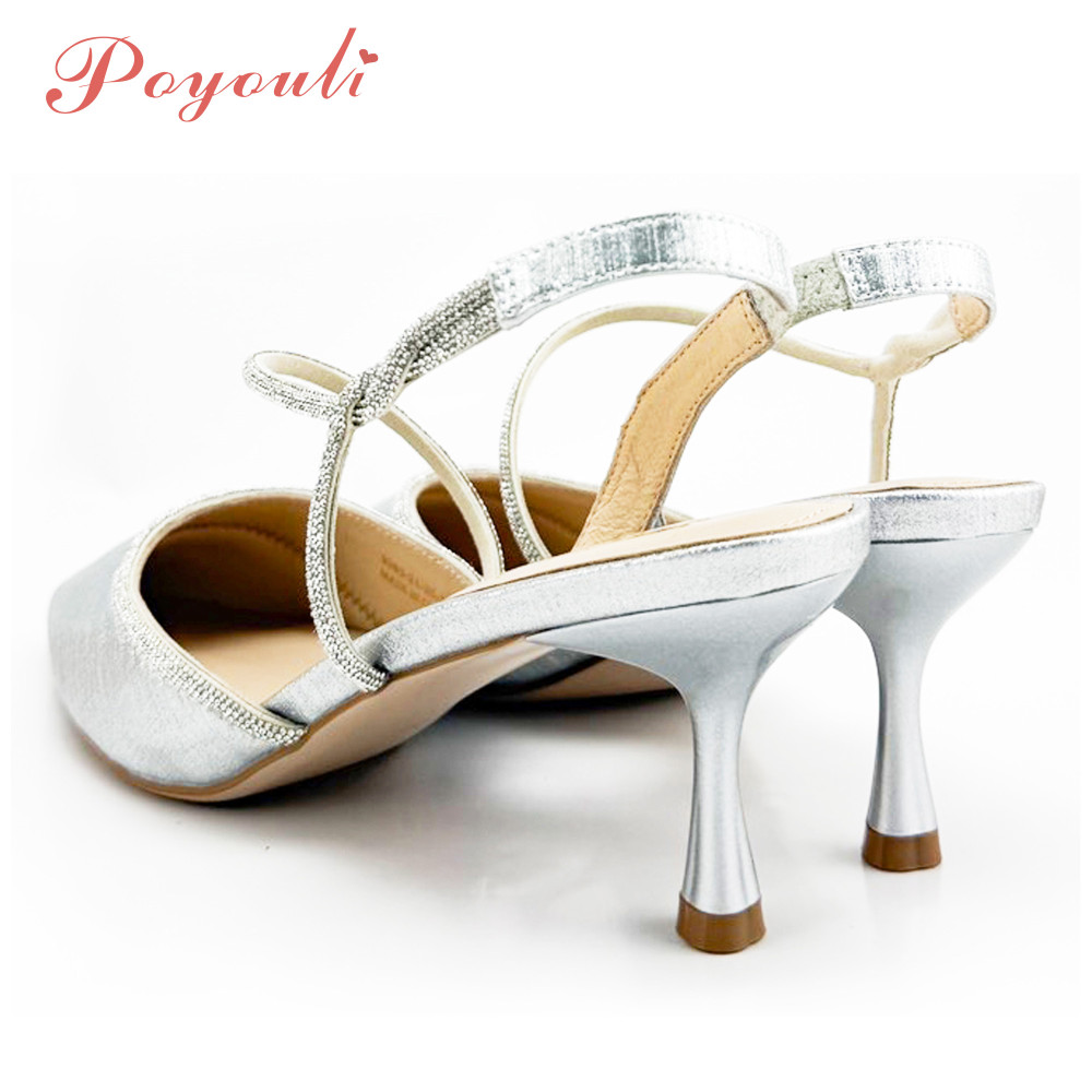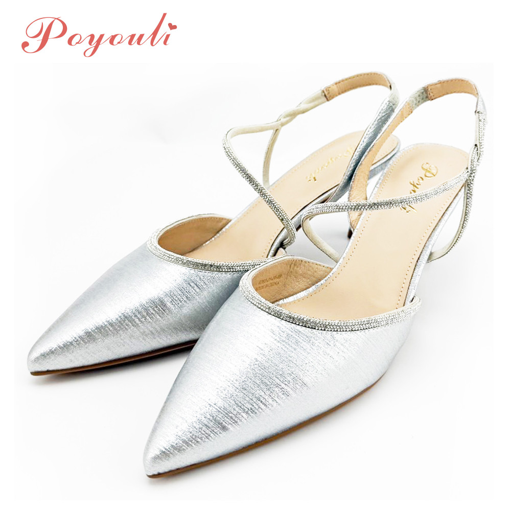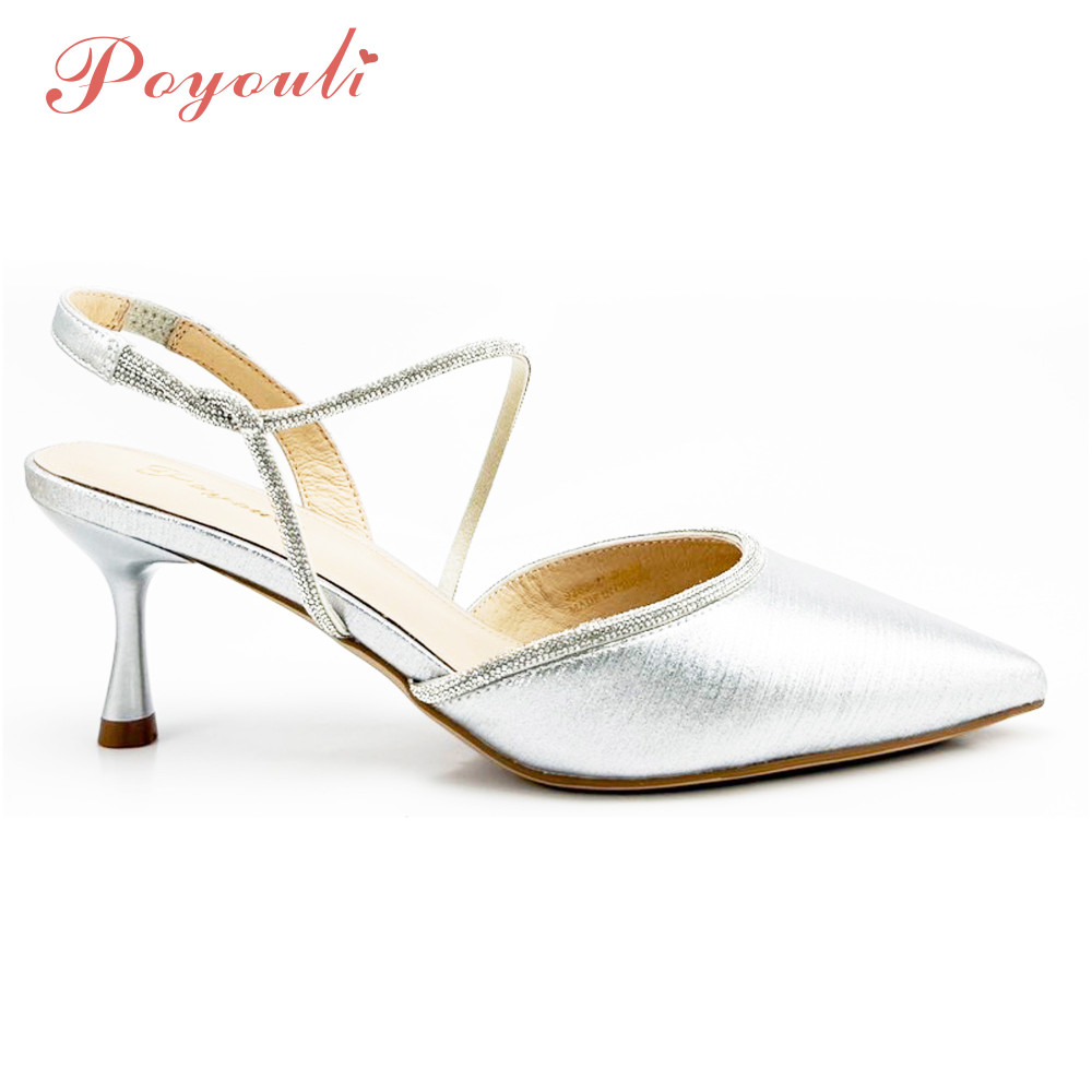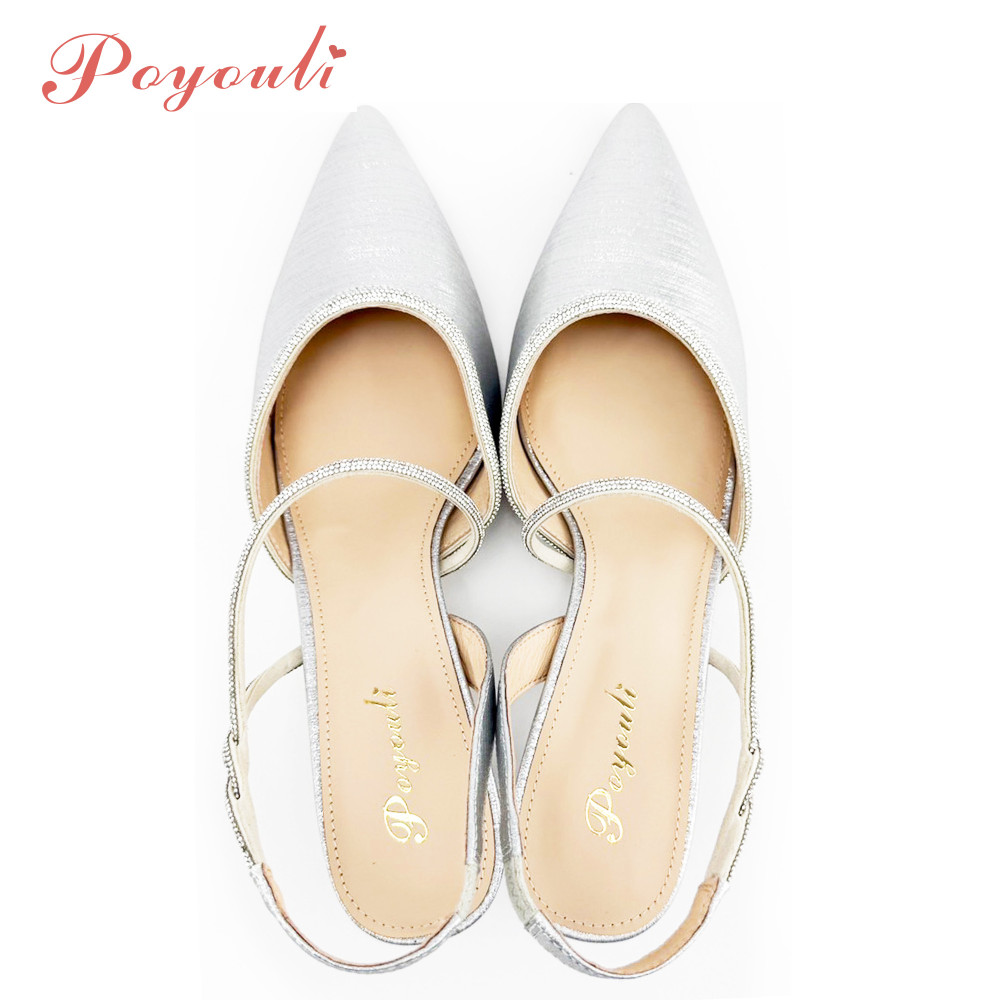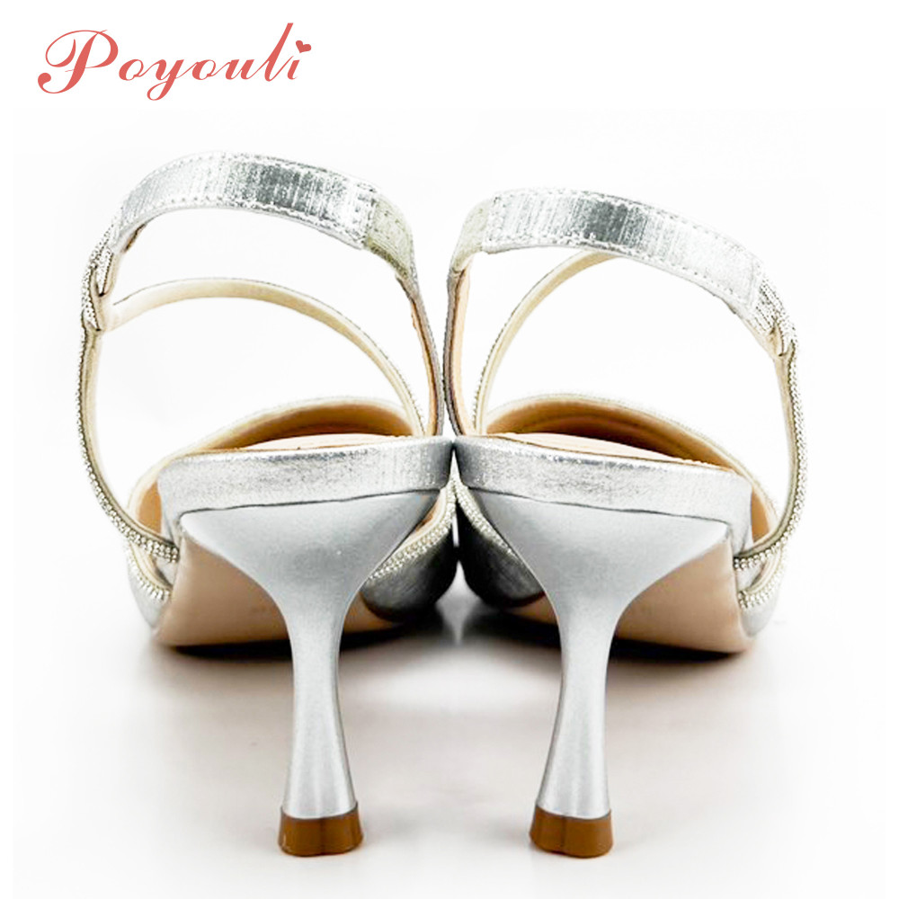 POYOULI高級奢華細閃尖頭高跟鞋-銀